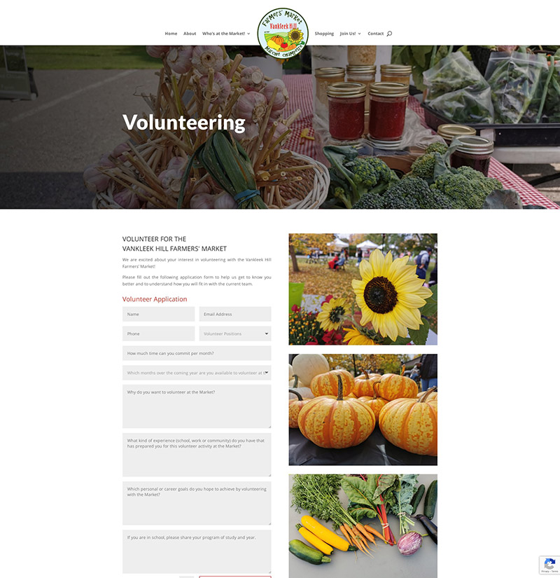 A new content management website build to feature all that the market offers to visitors, how to makes purchases and engaging profiles of the vendors. The colour palette was chosen to complement the logo colours and to have a bright market feel. Including newsletter sign-up to engage potential customers and custom field contact forms.